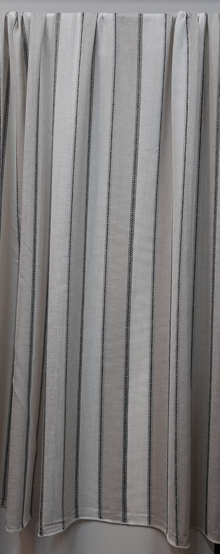 κουρτίνα γάζα ριγέ λευκό-γκρί εξαιρετικής ποιότητας για σαλόνι κρεββατοκάμαρα σε 3 μέτρα ύψος με βαρίδι