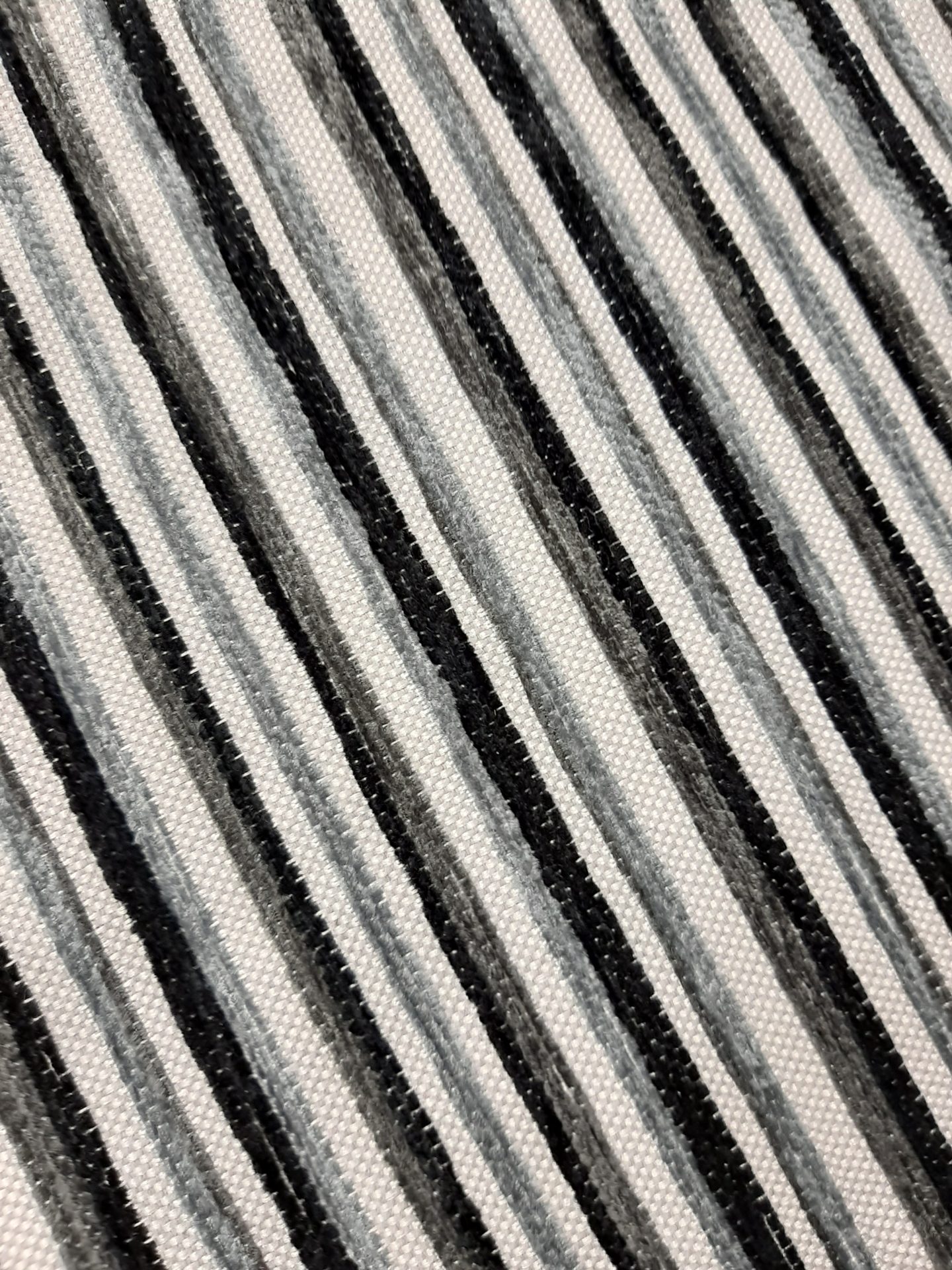 ύφασμα άσπρο με ρίγες σενίλ μαύρες και γκρί σε 2,80 φάρδος για ριχτάρι, μαξιλάρια, κουρτίνα