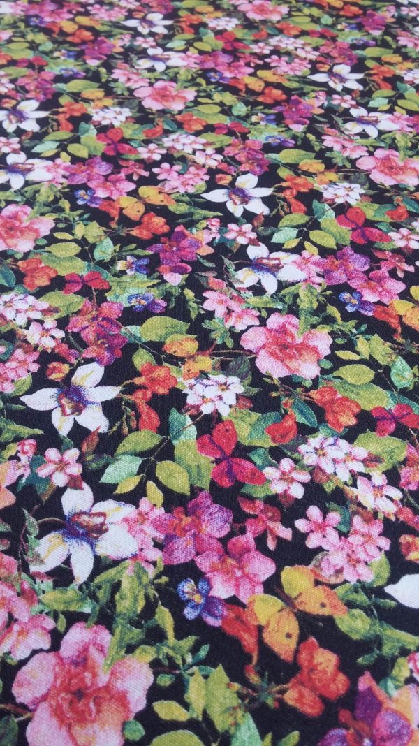 Ύφασμα πολύχρωμα λουλούδια σε σκούρο φόντο σε 2.80 φάρδος