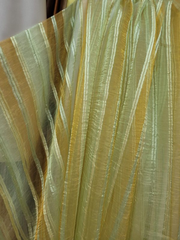 κουρτίνα με το μέτρο απο ύφασμα οργαντίνα τσαλακωτή με εκρού ώχρα, σαμπανί, λαδί ρίγα σε 3 μέτρα ύψος με βαρίδι
