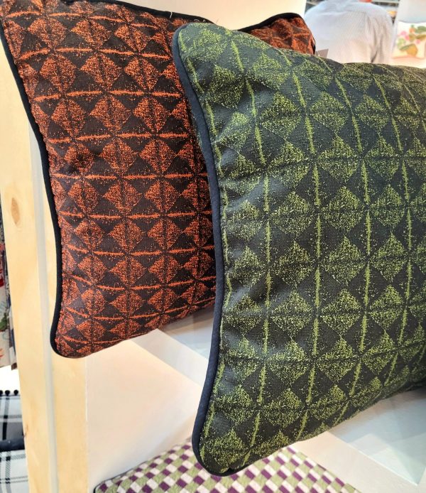υφάσματα επίπλωσης γεωμετρικά σχέδια κεραμιδί και πράσινο σε 2.80 φάρδος