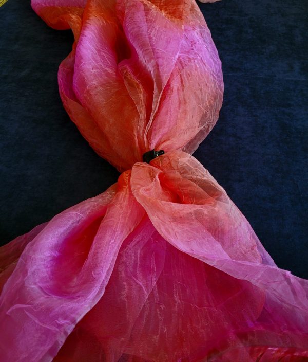 Κουρτίνα διαφανής με το μέτρο οργάντζα-βουάλ τσαλακωτή σε φούξια-κόκκινο χρώμα σε 3 μέτρα ύψος με βαρίδι και για διακόσμηση – ράνερ.