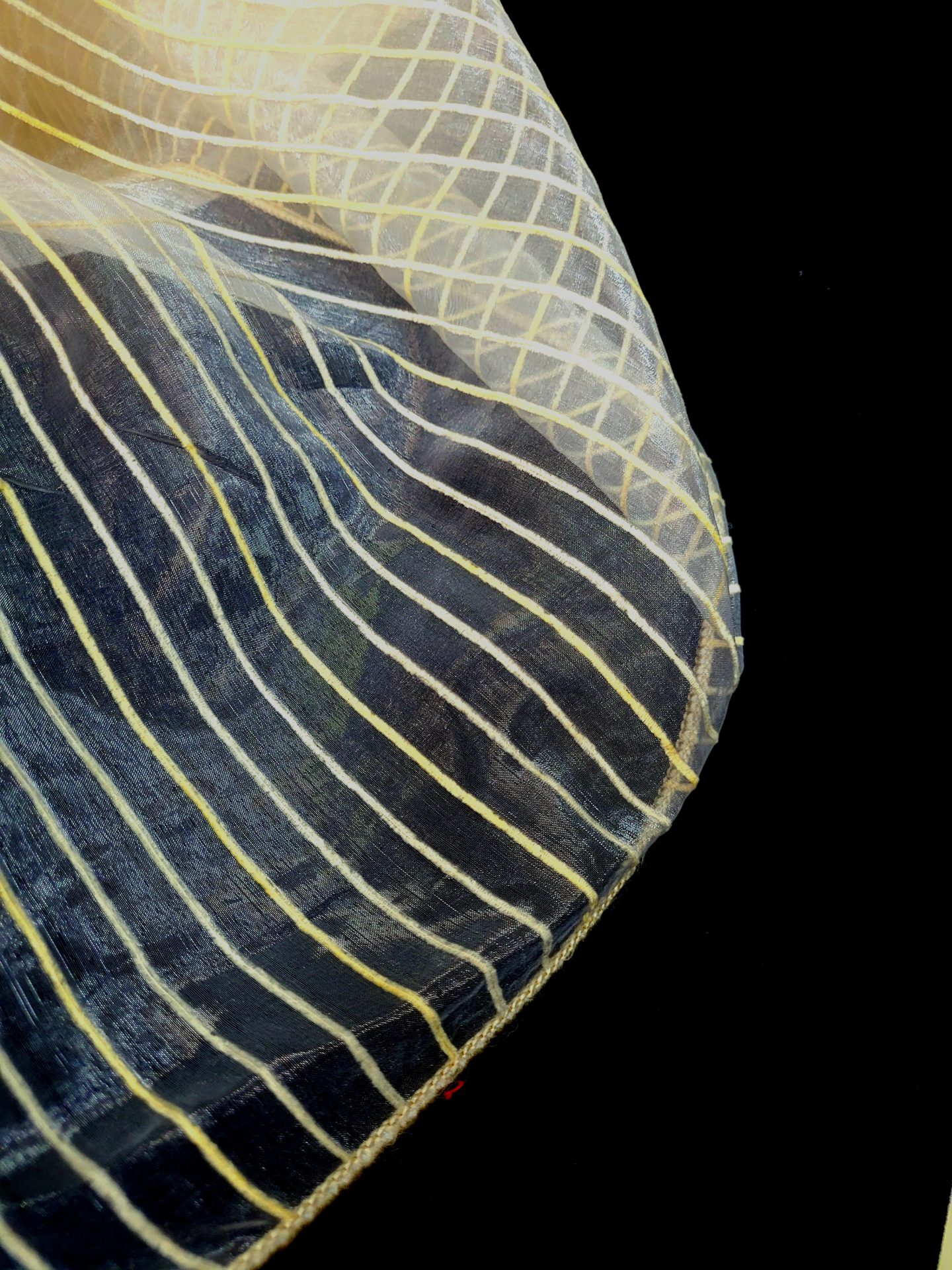 κουρτίνα με το μέτρο διάφανη οργαντίνα με ρίγες σενίλ κίτρινες και εκρού-κρέμ σε 3 μέτρα ύψος με βαρίδι