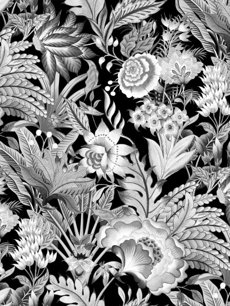 Ύφασμα PAUN NIGHT φτερό παγώνι μαύρο φόντο λουλούδι πούδρα τυρκουάζ 175113