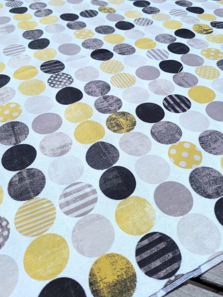 ύφασμα βαμβακερό για σεντόνι με κύκλους γκρί κόκκινο σε άσπρο φόντο 24060227 ΕΞΑΝΤΛΗΘΗΚΕ